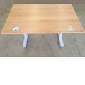 We drill two 79mm holes in the desk. These will be 40cm from the centre line of the desk and 2.5cm from the edge. One hole will accommodate a normal desk grommet (for cables to pass through) and one hole will accommodate the power grommet. We will supply you with one normal desk grommet and one power grommet for you to install in the pre-drilled holes. The color of the grommets can be matched to your frame (please select black or white)