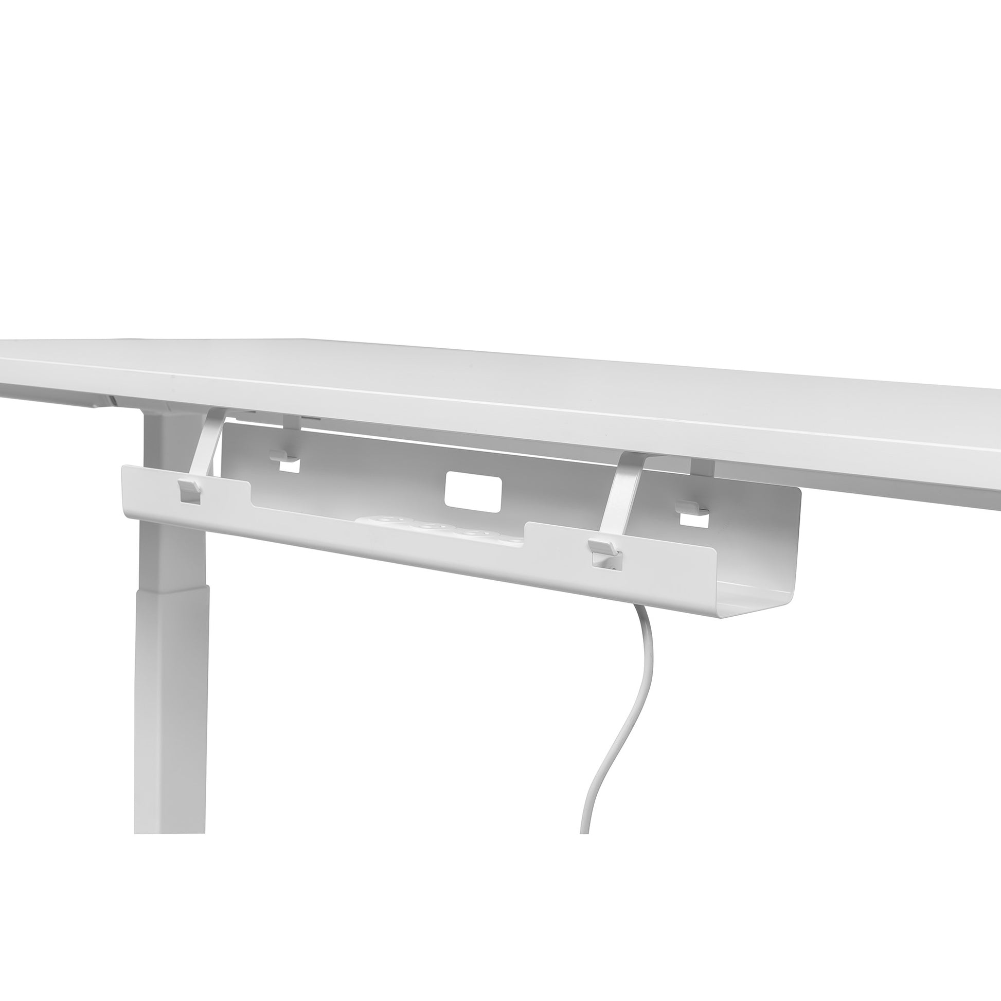 This Cable Management Tray is a must have when it comes to ensuring your cables are kept neat and tidy. The tray attaches to the desk with two brackets to ensure secure attachment. The tray can be unhooked to allow full and easy access for adding power boards or other items to the tray.