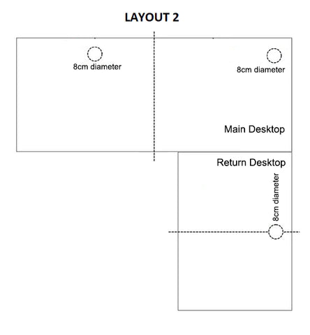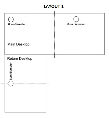 When you order this product, we drill the required holes in your desktop (that is in the same order) as per the pictured diagram. The desk will come with 3 metal cable hole grommets of your colour choice.