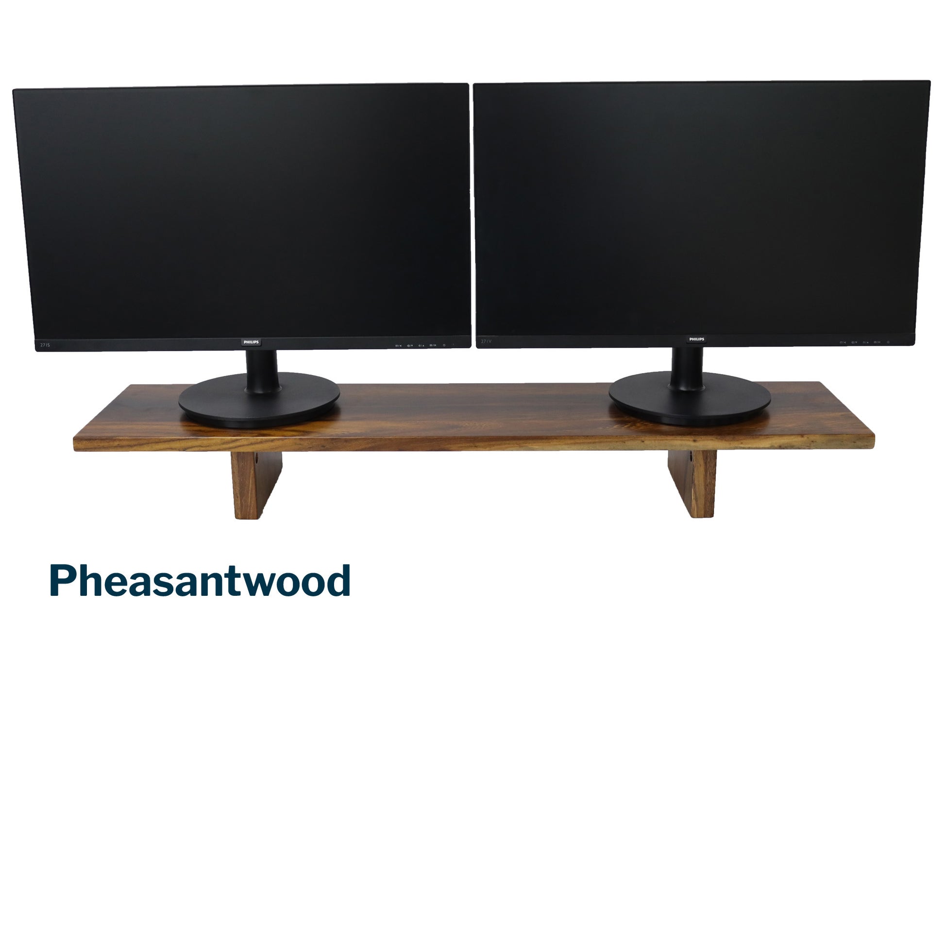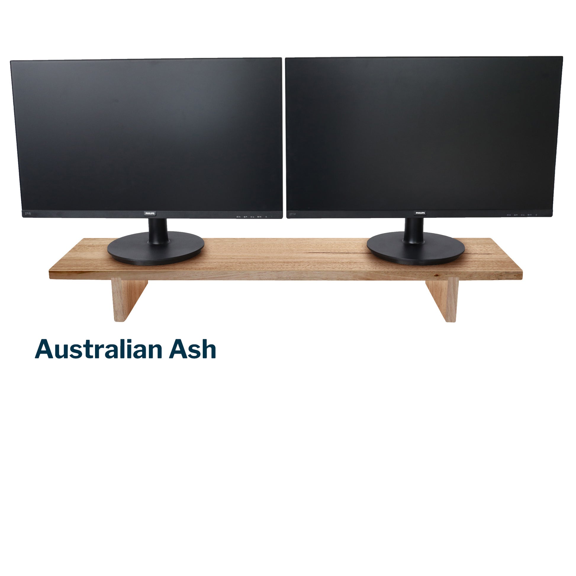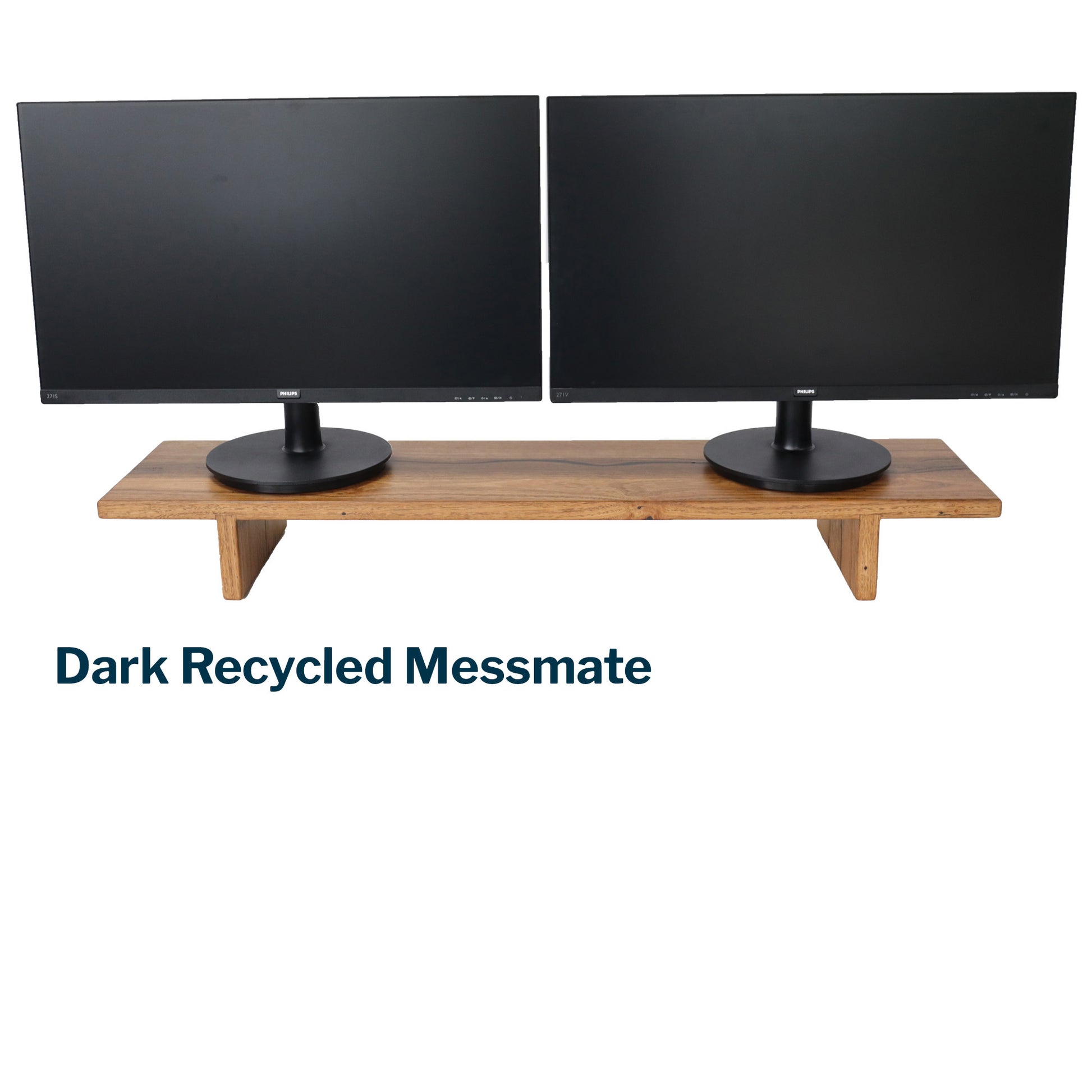 Match your existing PRO or KLIK UpDown Desk or desktop colour! Our Monitor Stands come in a wide range of finishes such as Recycled Messmate, Pheasantwood, Natural Oak, Espresso Ash, Acacia and Walnut Rubberwood. With 25 or 27mm of thickness, your Monitor Stand can handle two 34" monitors and provide a setting for all the accessories you need.