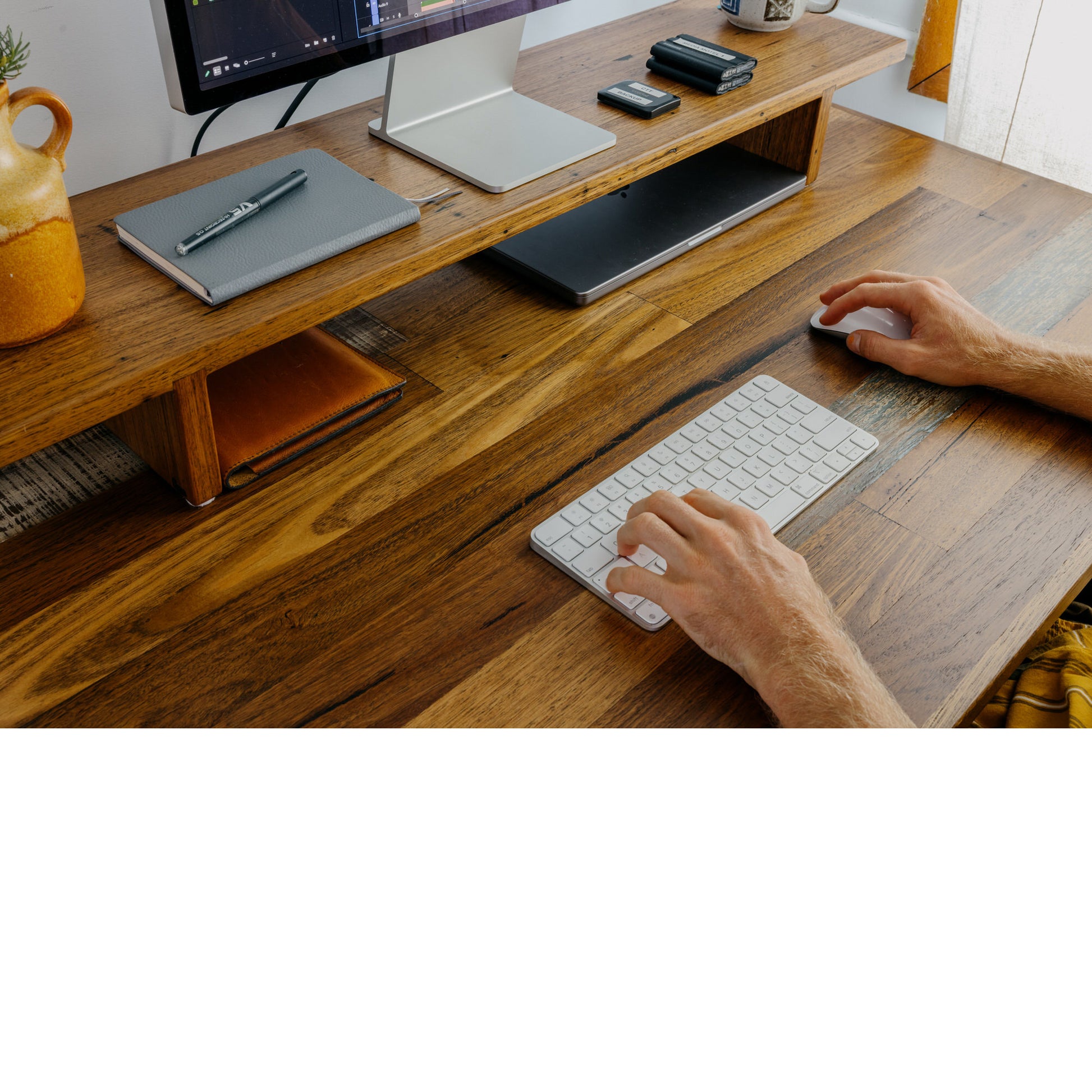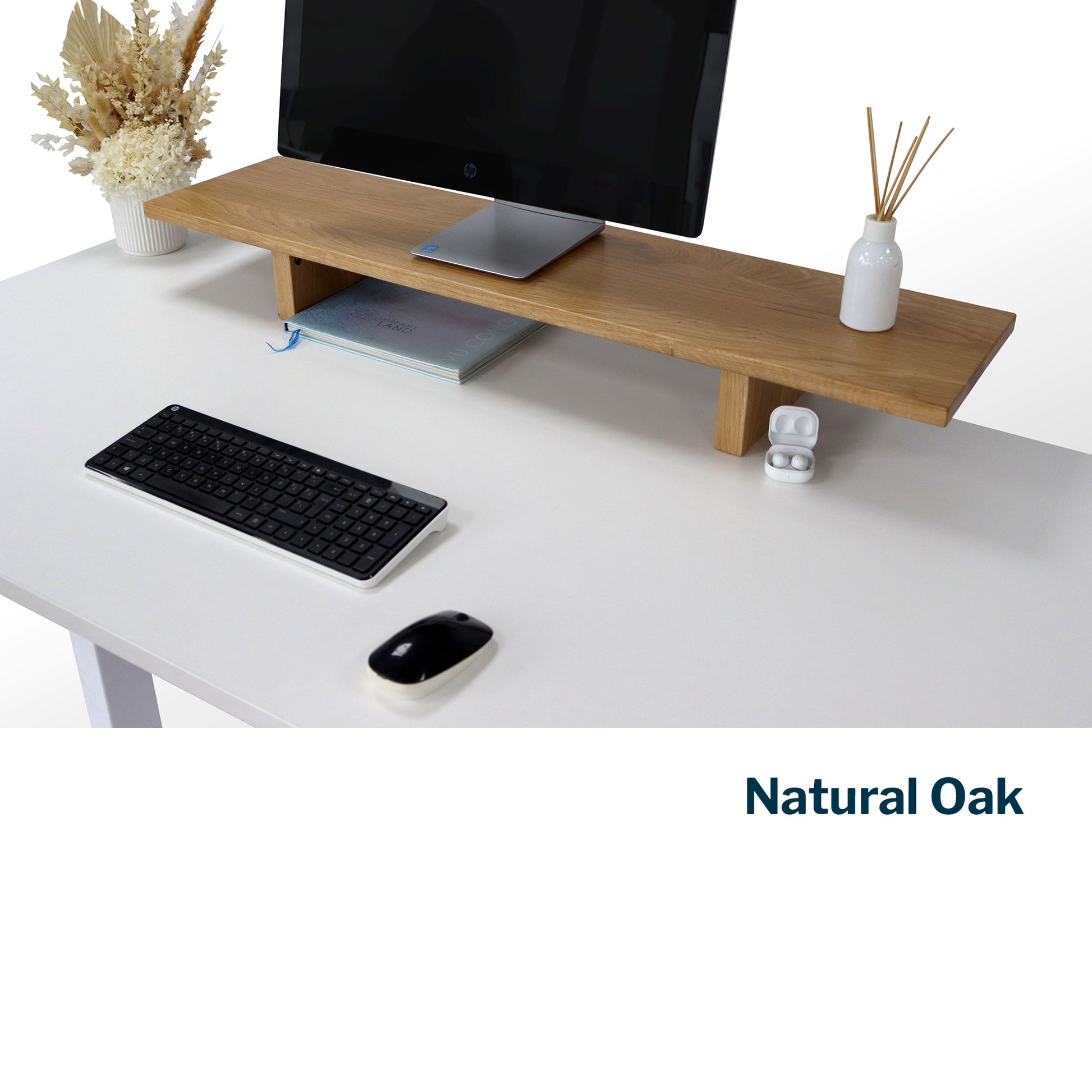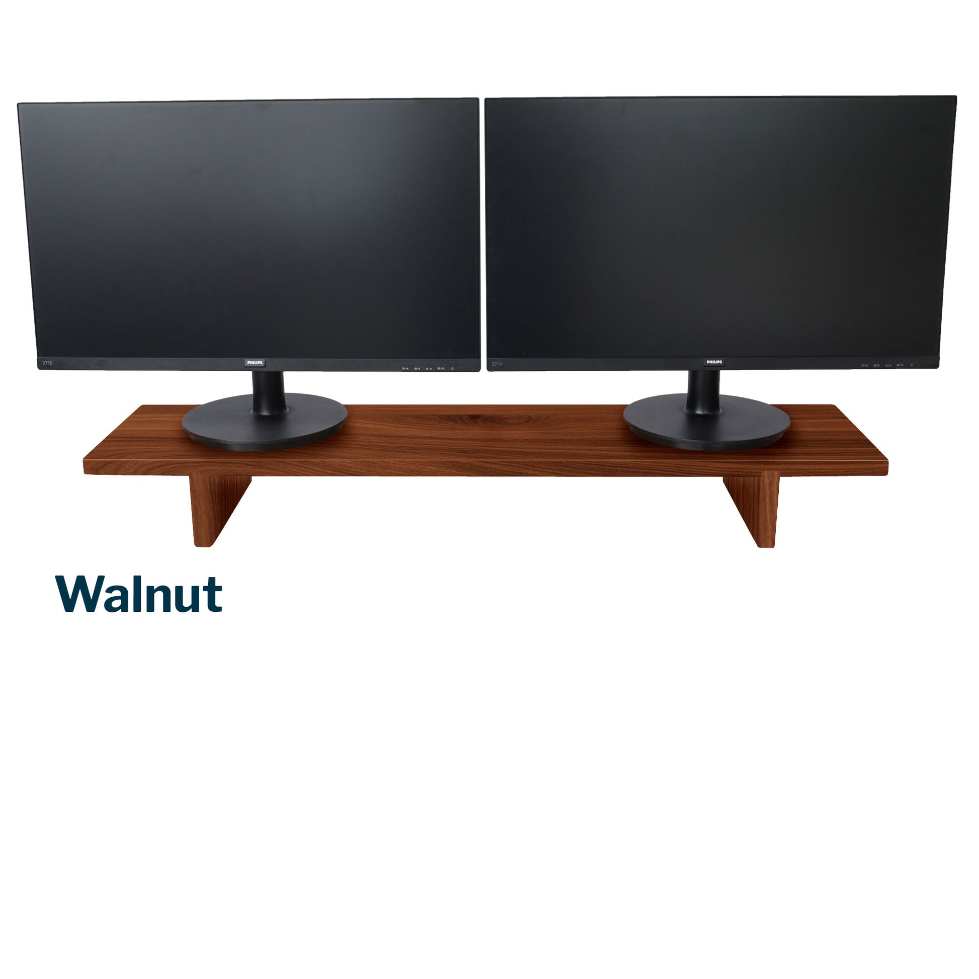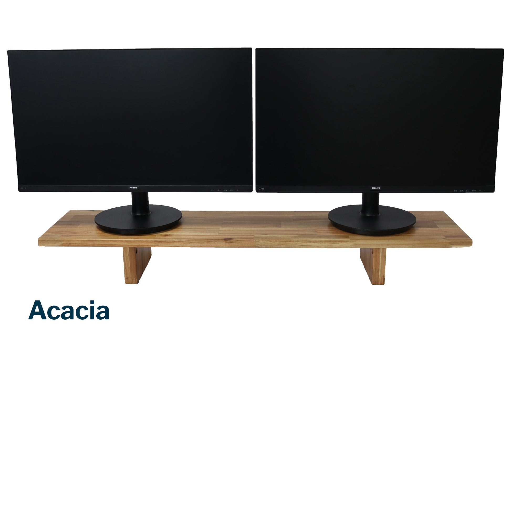 Match your existing PRO or KLIK UpDown Desk or desktop colour! Our Monitor Stands come in a wide range of finishes such as Recycled Messmate, Pheasantwood, Natural Oak, Espresso Ash, Acacia and Walnut Rubberwood. With 25 or 27mm of thickness, your Monitor Stand can handle two 34" monitors and provide a setting for all the accessories you need.