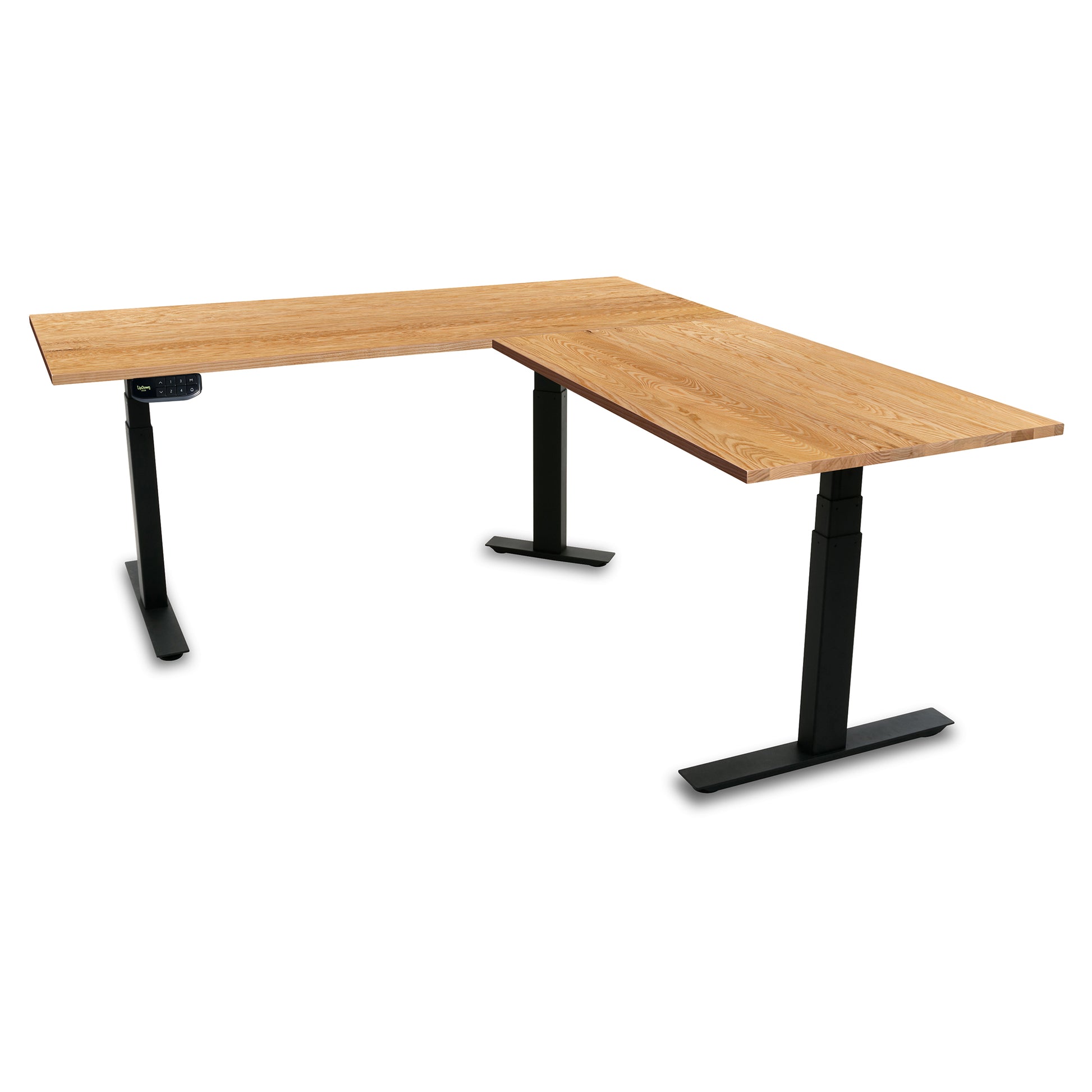 Our most popular corner desktop arrangement is 195cm x 180cm, made up of 2 pieces connected in a right-angled L-shape: