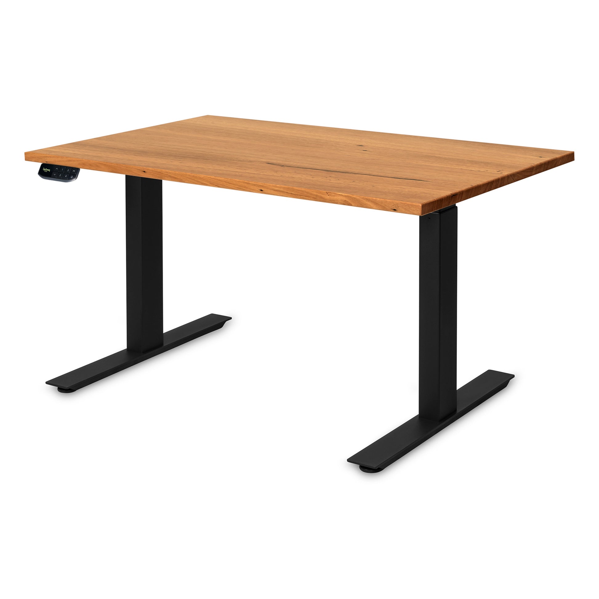 Our Recycled Messmate desktop is an eye-catching desk full of character and handmade by our local artisan furniture maker. Constructed from reclaimed local timber, each desktop offers unique grain patterns and characteristics for people interested in beauty as well as function and environmental sustainability. It comes in either a Natural light finish, or a darker Black Japan stain. This solid wood desktop is a generous 27mm thick with a pencil bullnose edge type and a square corner. It features reinforced bars on the underside of the desktop for additional strength.