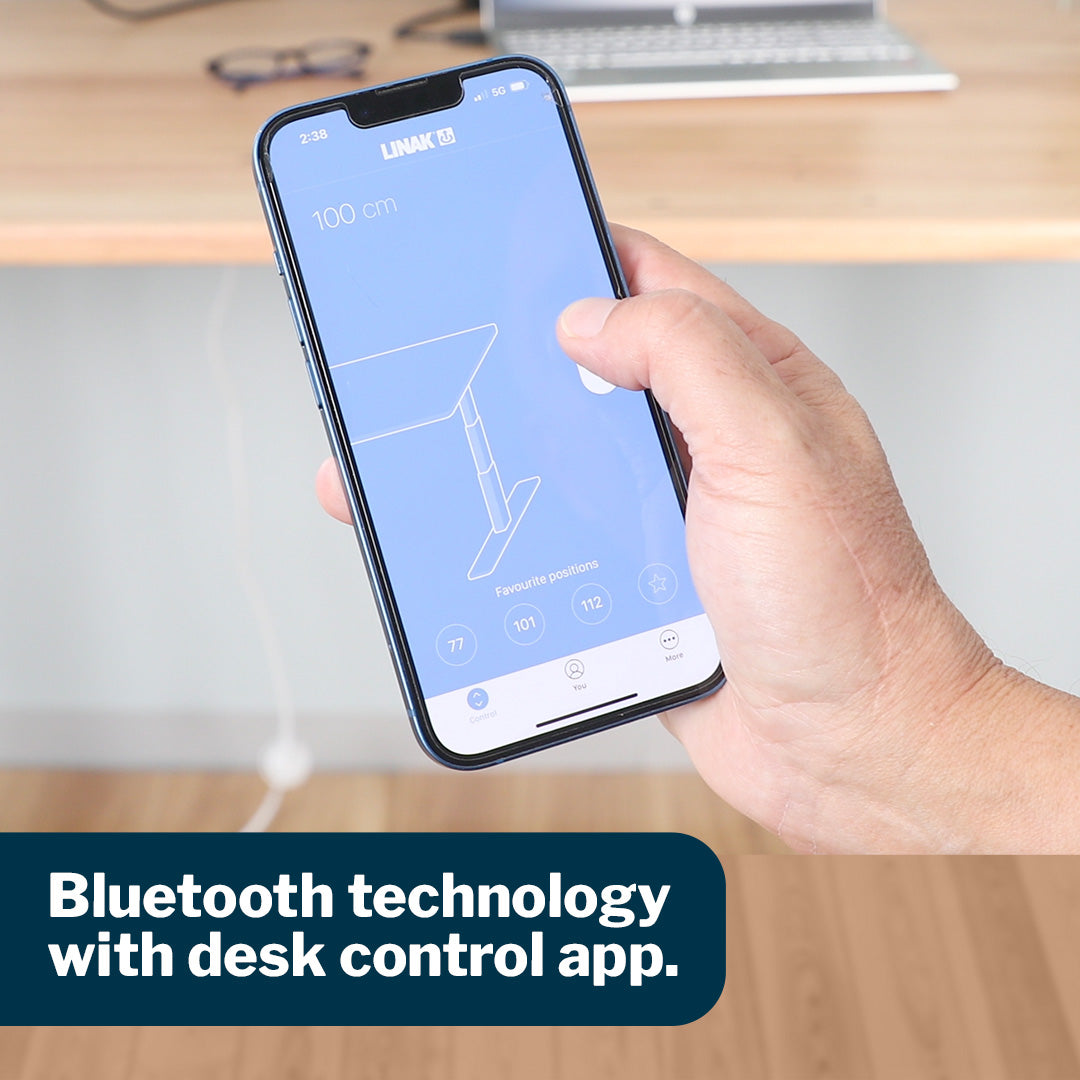 The KLIK controllers are compatible with the Desk Control app, using integrated Bluetooth® wireless technology. The app allows you to keep track of your personal desk usage statistics on a smart device and get notifications when to stand.