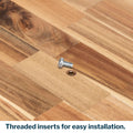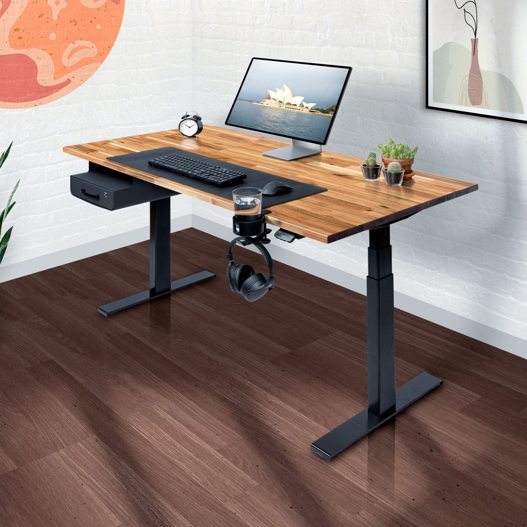 Our Acacia desktops are sustainably sourced from FSC certified forests that ensures responsible forest management. Acacia has prominent colour tones, ranging from medium gold to dark brown. Its surface has a clear finish, with a square or contour edge and is 25mm thick. It features reinforced bars on the underside of the desktop for additional strength.