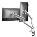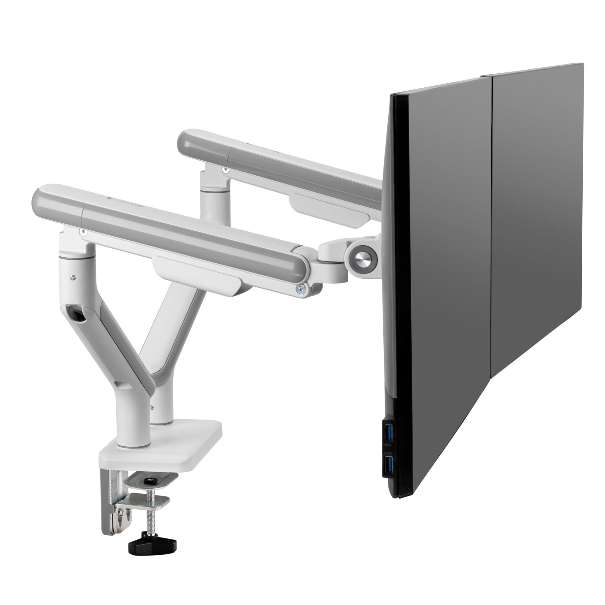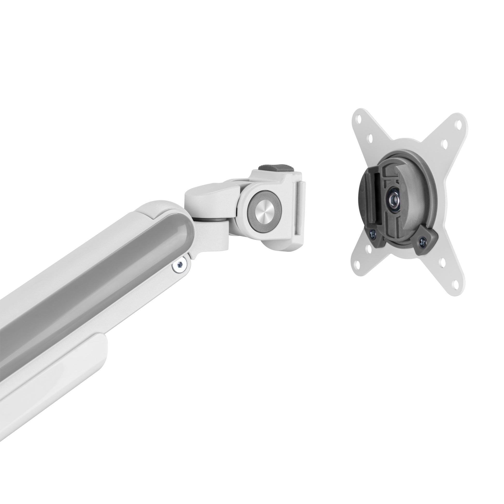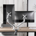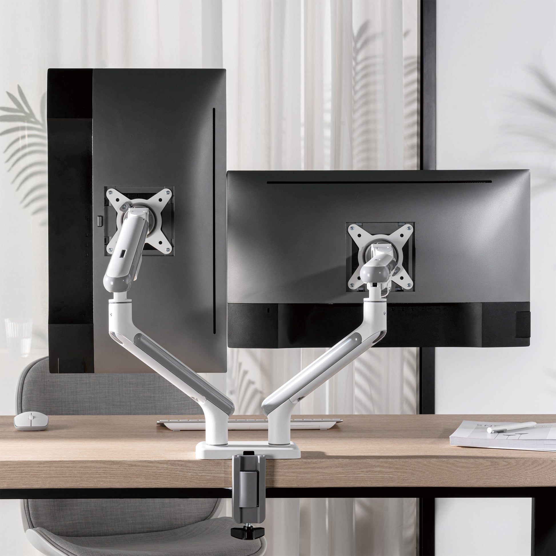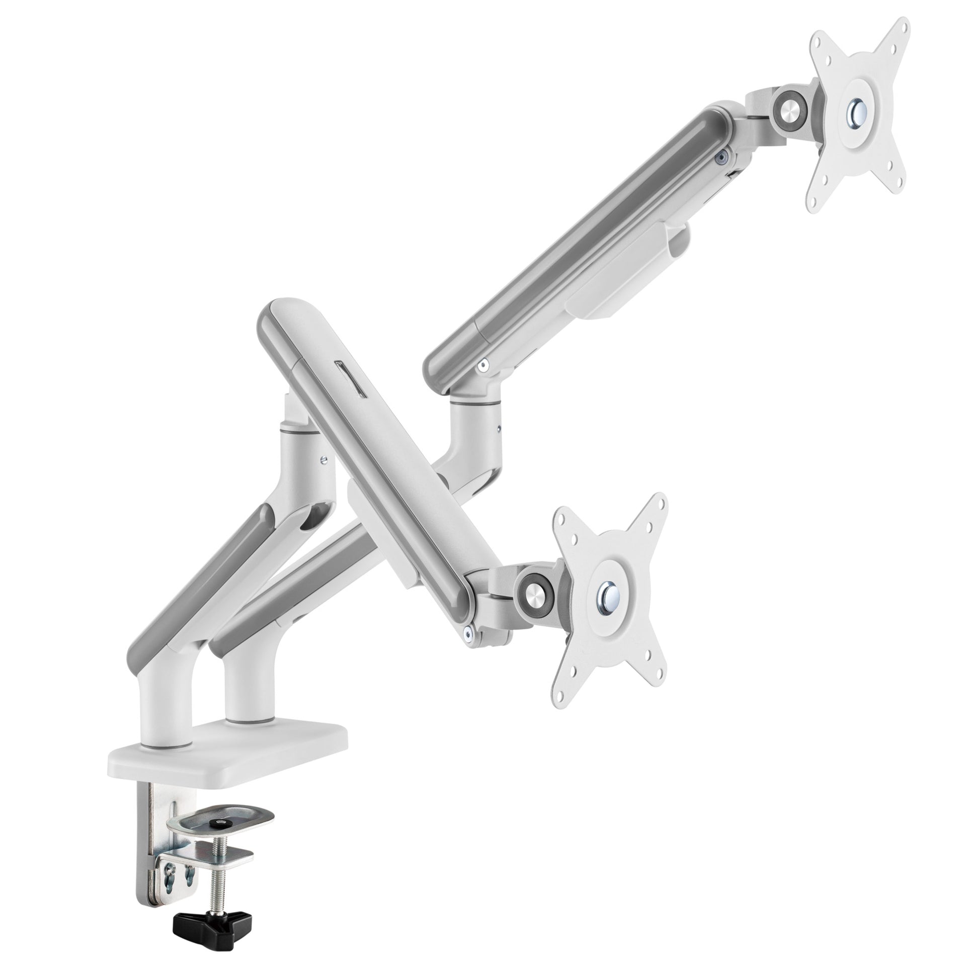 The monitor arms come with a high strength aluminium frame which provides strength and stability as well as a high 9kg lifting capacity per arm. Spring mounted joints provide the lift and hold to keep your monitor securely in place.
